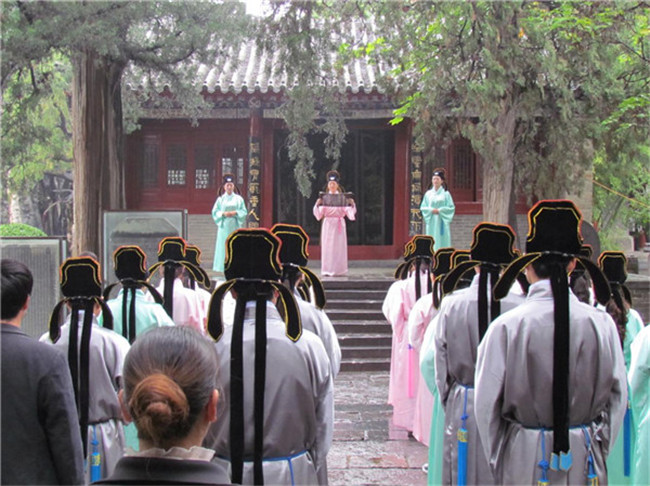 為增加節(jié)日看點,向游客展示天地之中世界歷史文化遺產地的特色文化魅力,在扮靚景區(qū)營造濃厚假日氛圍的同時,還精心策劃籌備了文武合一的系列主題演藝活動?!拔摹奔匆葬躁枙喝鍖W文化為代表的拜孔儀式和以中岳廟道教文化為代表的百人誦讀弟子規(guī)祈福儀式?!拔洹奔匆陨倭炙鹿Ψ蛭幕癁榇淼摹吧倭止Ψ蛐恪薄ⅰ坝∠笊倭帧?、“少林英雄會”和以中岳廟儒、道哲學為結合的太極拳等多元文化演藝節(jié)目,為游客參與互動體驗和圓夢嵩山增添美好旅行印記,并藉此進一步提升嵩山少林多元文化品牌聲譽,進一步強化嵩山景區(qū)在河南乃至國內外的旅游形象。