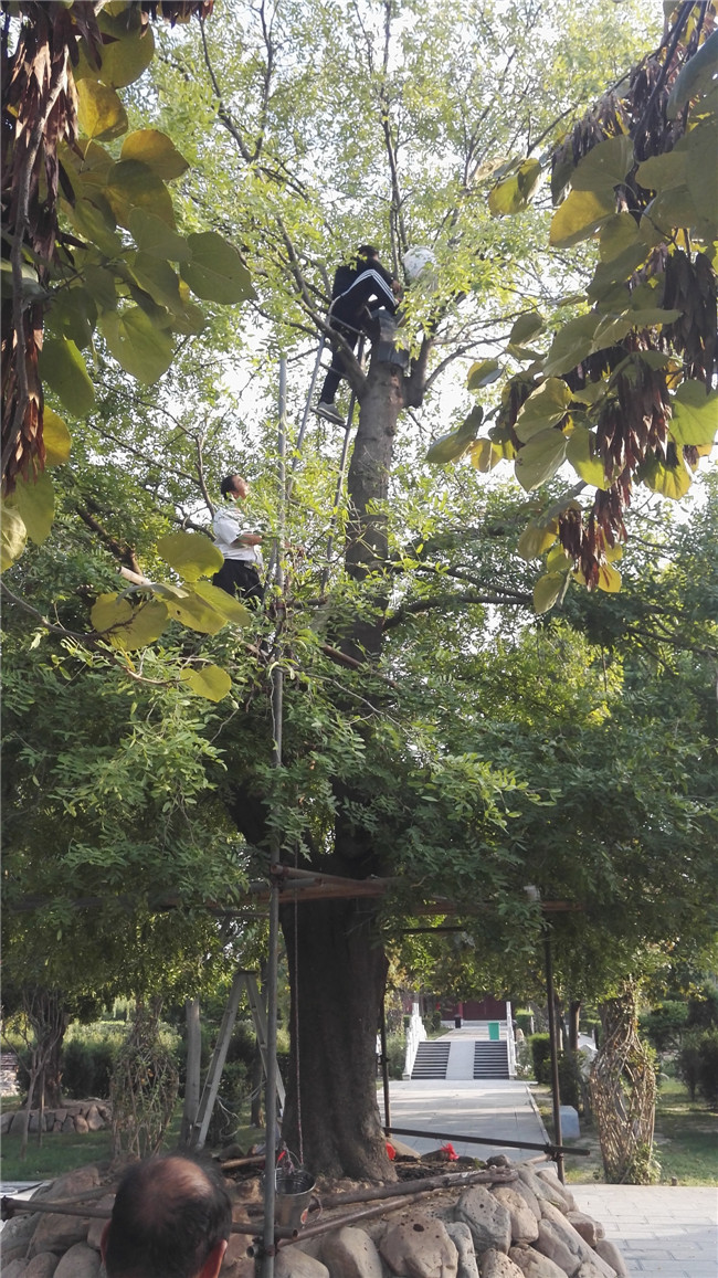 古樹名木是人類歷史和大自然變遷的見證者,被稱為“活化石”、“綠色文物”。近日,太昊陵景區(qū)把古樹名木的保護(hù)工作作為生態(tài)文明建設(shè)的重要內(nèi)容,組織技術(shù)人員對(duì)景區(qū)內(nèi)的古樹名木進(jìn)行了病蟲害除治和管護(hù)巡查工作。
