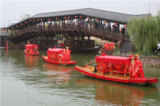 8月7日,中國傳統(tǒng)的七夕情人節(jié),7對來自全國各地的新人聚在一起,舉辦了一場穿越千年的宋代集體婚禮?;ù灿?、八抬大轎、宋婚大典、鼓樂喧天,熱鬧非凡,吸引眾多游客圍觀。