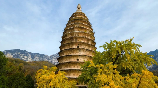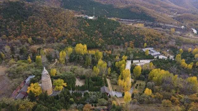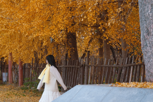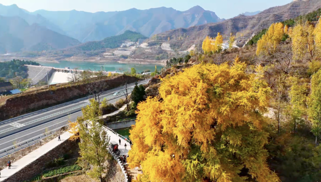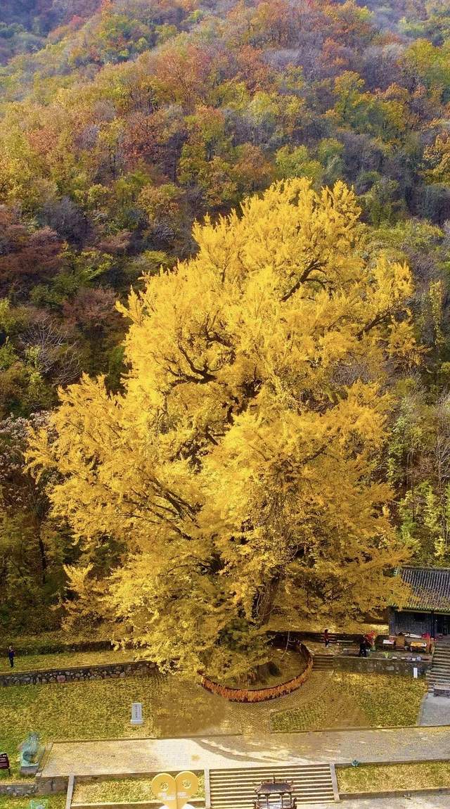 層層疊疊的山巒被秋風(fēng)染成金黃色的銀杏葉