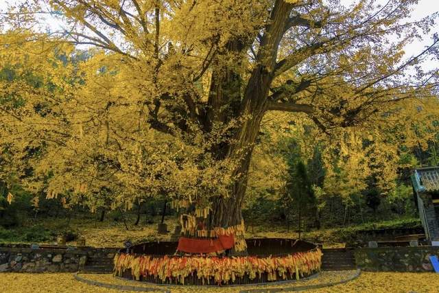 身披“金甲”的銀杏樹靜靜佇立在山腰