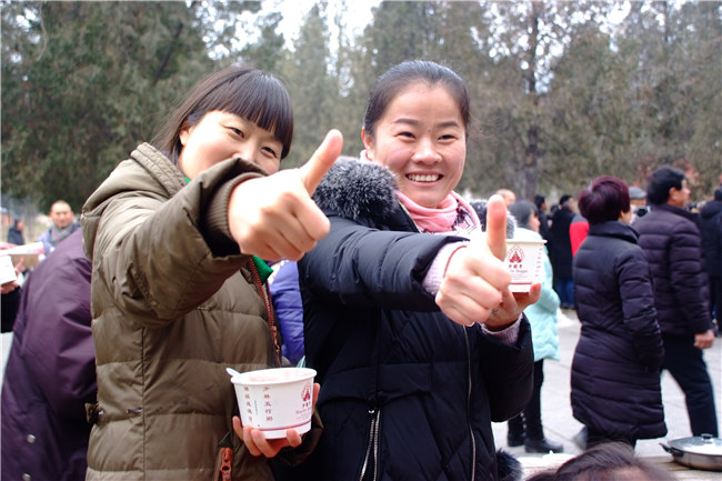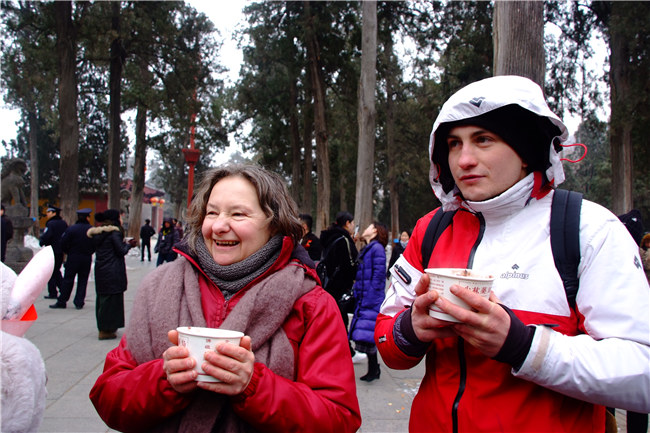 來自波蘭的Sarah此次是同她的兒子Alex一同前來少林寺的,提到今天的施粥法會,她看起來非常高興,“沒想到來少林寺能遇上這樣一場民俗盛事,能夠在中國的傳統(tǒng)節(jié)日臘八節(jié),在禪宗祖庭、佛門圣地少林寺喝到一碗熱粥,真的是意義非凡。粥很好喝,我們非常開心!”