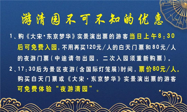 特別提醒:5月1日、5月2日、5月3日三天,《大宋·東京夢(mèng)華》每天演出三場(chǎng),演出時(shí)間:第一場(chǎng):19:30-20:40;第二場(chǎng):21:00-22:10;第三場(chǎng):22:30-23:40。
