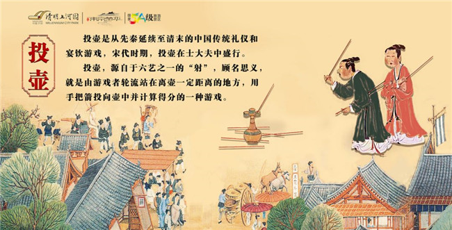 你記憶里的開封的夏天是什么味道呢?是冰爽可口的冰赤豆,還是滿嘴豆糝味的炒涼粉,這個夏天,清明上河園尋找“開封味道”美食大賽正在組織策劃當(dāng)中,吃貨小伙伴們,要不要考慮來當(dāng)評委呀,要求不高,能吃就行!投壺比賽火熱開賽