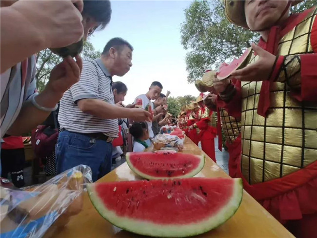 “無西瓜,不夏天!皇上下旨,大宋官兵與民同樂,命百名御林軍在上善門前擺開陣勢(shì),接受吃瓜群眾的挑戰(zhàn)!小寶貝們也發(fā)揮自己最大的潛力,抱起西瓜就是啃呀!周六晚上,我們相約來戰(zhàn)!”