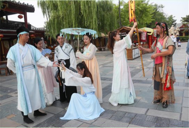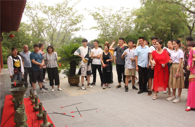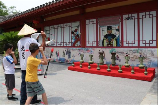 “在木偶奇遇館門口,組隊(duì)來一場(chǎng)投壺比賽呀!”