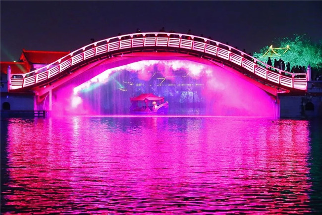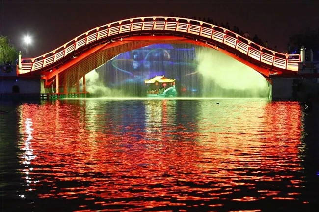 滿足了味蕾,接下來帶你看一看清明上河園撩人的夜景,清風微波,水色宜人的夜幕中,一艘艘游船泛行在汴河之上。