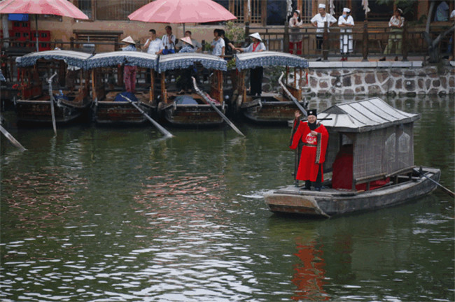 坐在古色古香的游船里,品味岸上古老的建筑氣息。河邊燈影閃爍,恍若間穿越了前世今生。