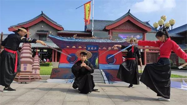 江湖俠客勇闖少林,傳承功夫文化底蘊(yùn)。一襲勁裝、倚劍江湖。游人化身俠客初入江湖,完成兩臂挑水挑戰(zhàn),再現(xiàn)影視劇中少林小子苦練武藝的經(jīng)典一幕。拜師學(xué)藝,苦練基本功,或屹立如山,盡顯堅(jiān)忍不拔之志,或金雞獨(dú)立,盡顯挺拔帥氣之姿。近距離學(xué)習(xí)少林拳法,起如箭,收如風(fēng),快如流星,力如山崩。配上惟妙惟肖的象形拳,靜若伏虎,動(dòng)若飛龍,揮灑自如,瀟灑威武,聲名鵲起,名震江湖!除了傳統(tǒng)功夫挑戰(zhàn)外,還特別加入“抖來少林學(xué)武功”短視頻創(chuàng)意挑戰(zhàn),結(jié)合經(jīng)久傳唱的武俠歌曲,展現(xiàn)自己獨(dú)門絕學(xué)。歷盡千辛過五關(guān),參與挑戰(zhàn)的游客集齊關(guān)卡印章,成為實(shí)至名歸的武林高手,笑傲江湖。同時(shí)景區(qū)還為挑戰(zhàn)成功者送上了精美紀(jì)念品及通關(guān)文牒,希望帶給大家一個(gè)難忘的中國功夫之旅!